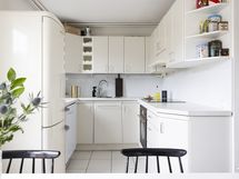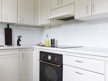 - Liesi: induktio, erillisuuni, liesitaso. Työtasot: laminaatti. Kylmäsäilytys: jääkaappi/pakastin. Varustus: liesituuletin, astianpesukone, kiinteät valaisimet.