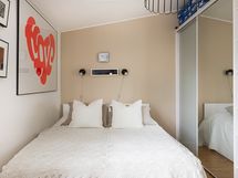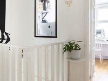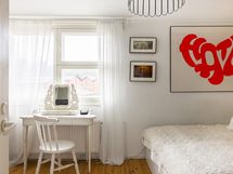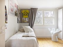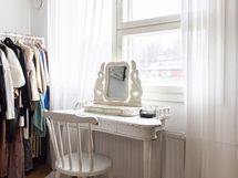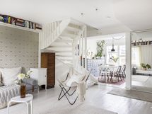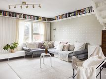 - Muuta kauppaan kuuluvaa: Olohuoneessa on puusepän tekemä, katonrajassa huonetta kiertävä kirjahylly, joka jää asuntoon.